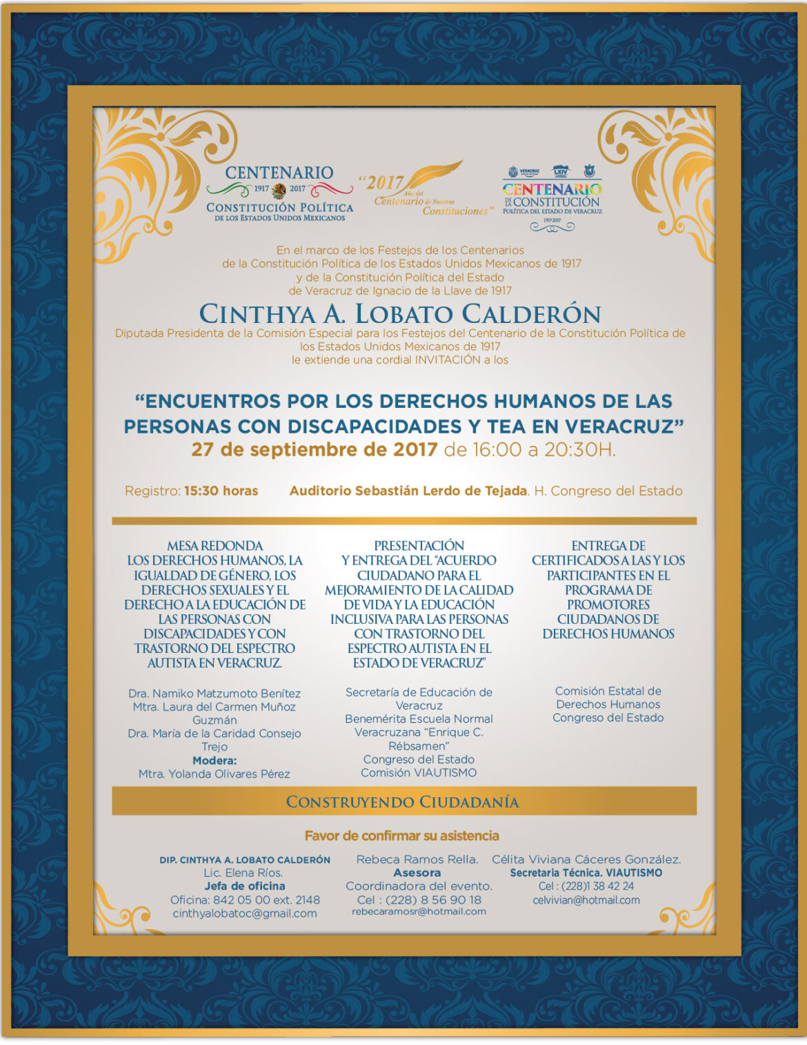 | En el marco de los Festejos de los Centenarios de la Constitución Política de los Estados Unidos Mexicanos de 1917 y de la Constitución Política del Estado de Veracruz de Ignacio de la Llave de 1917