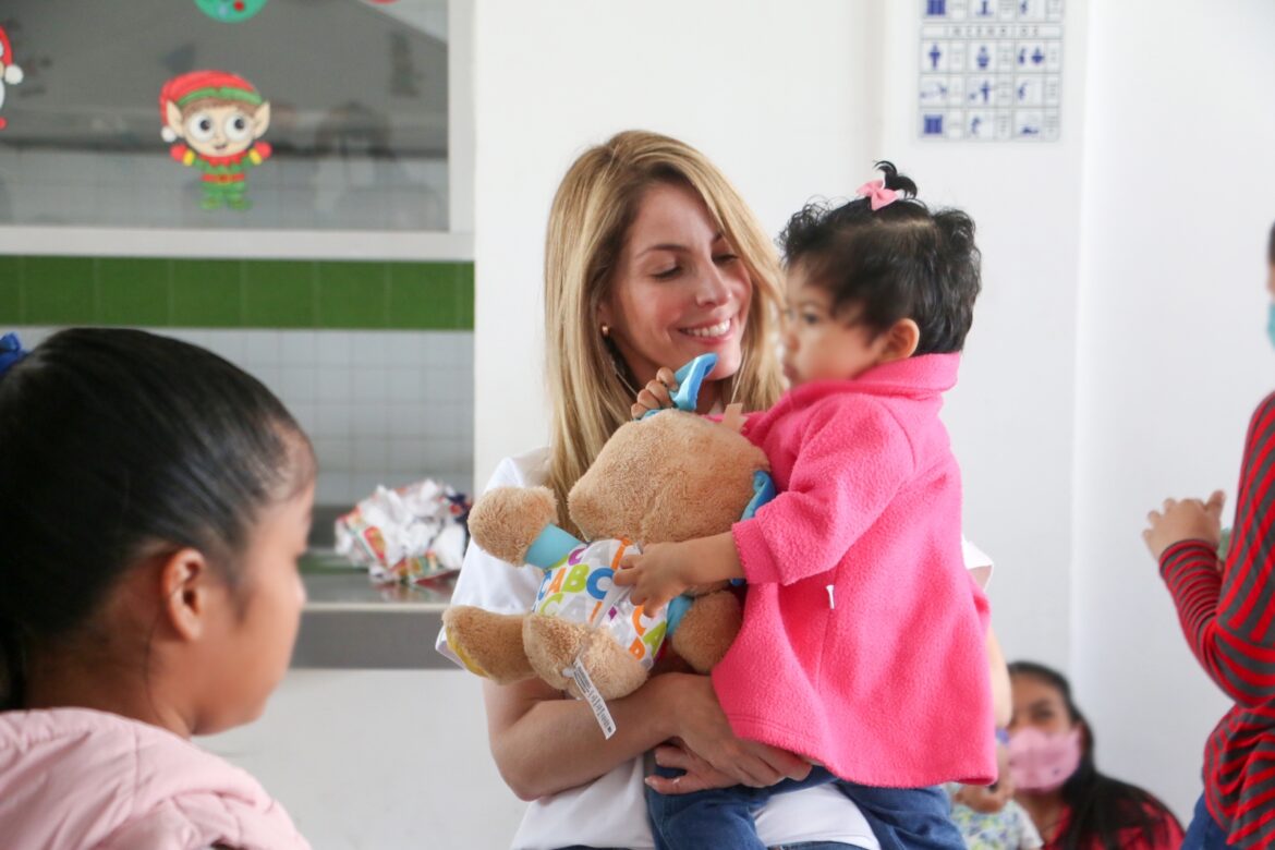 La Alcaldesa estuvo acompañada por sus hijos Miguelito, Hanna y María, quienes ayudaron a los niños a abrir sus regalos, conviviendo y pasando un rato muy agradable con todos ellos.