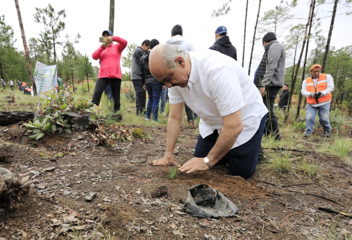 Perote, Ver.- El presidente municipal Ricardo Ahued Bardahuil asistió a la jornada de reforestación que se realizó este domingo en el Ejido Sierra de Agua, Perote, como parte de la iniciativa “Fabriquemos Agua Reforestando”.