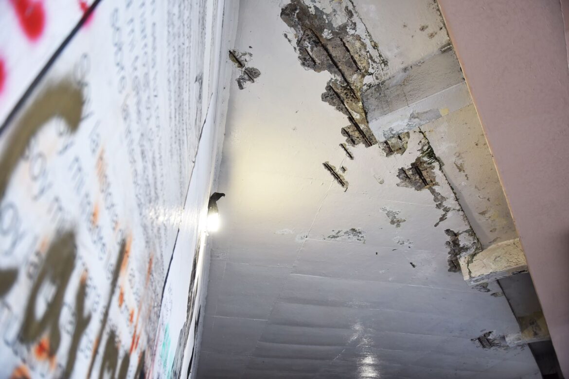 Detalló que el dictamen preliminar establece que “el aplanado se está cayendo por la humedad acumulada, el armado presenta oxidación en las varillas y se están desprendiendo; se recomienda un diagnóstico estructural que ya mandamos a hacer”.