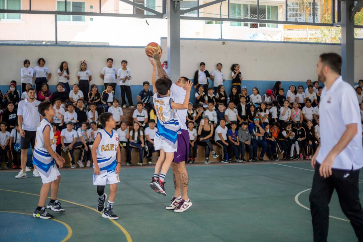 Durante la jornada, los jugadores compartieron con el estudiantado consejos para mejorar sus habilidades de basquetbol, firmaron autógrafos y jugaron con los alumnos que forman parte de la selección de la escuela un partido de baloncesto.