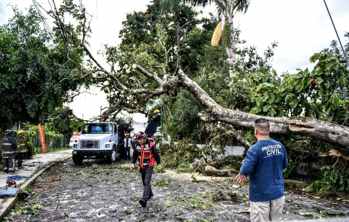 Xalapa, Ver.- Derivado de los efectos del Frente Frío Número 16 que generó vientos fuertes desde la mañana hasta el medio día, la Dirección de Protección Civil en coordinación con las áreas operativas municipales han atendido hasta el momento un promedio de 25 árboles caídos.