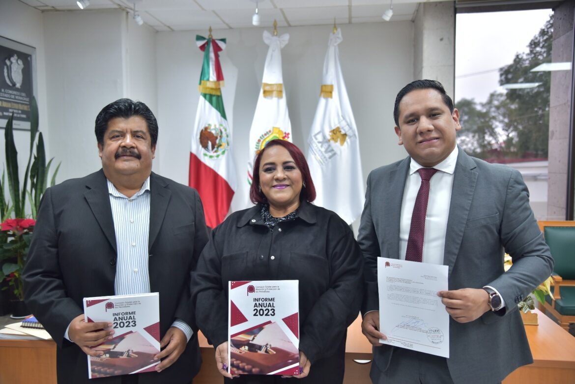 El Congreso de Estado, por conducto de su presidenta, diputada Adriana Esther Martínez Sánchez, recibió del presidente de la Comisión Estatal para la Atención y Protección de los Periodistas (CEAPP), Silverio Quevedo Elox, el informe de labores del organismo autónomo, correspondiente al periodo 2022-2023.