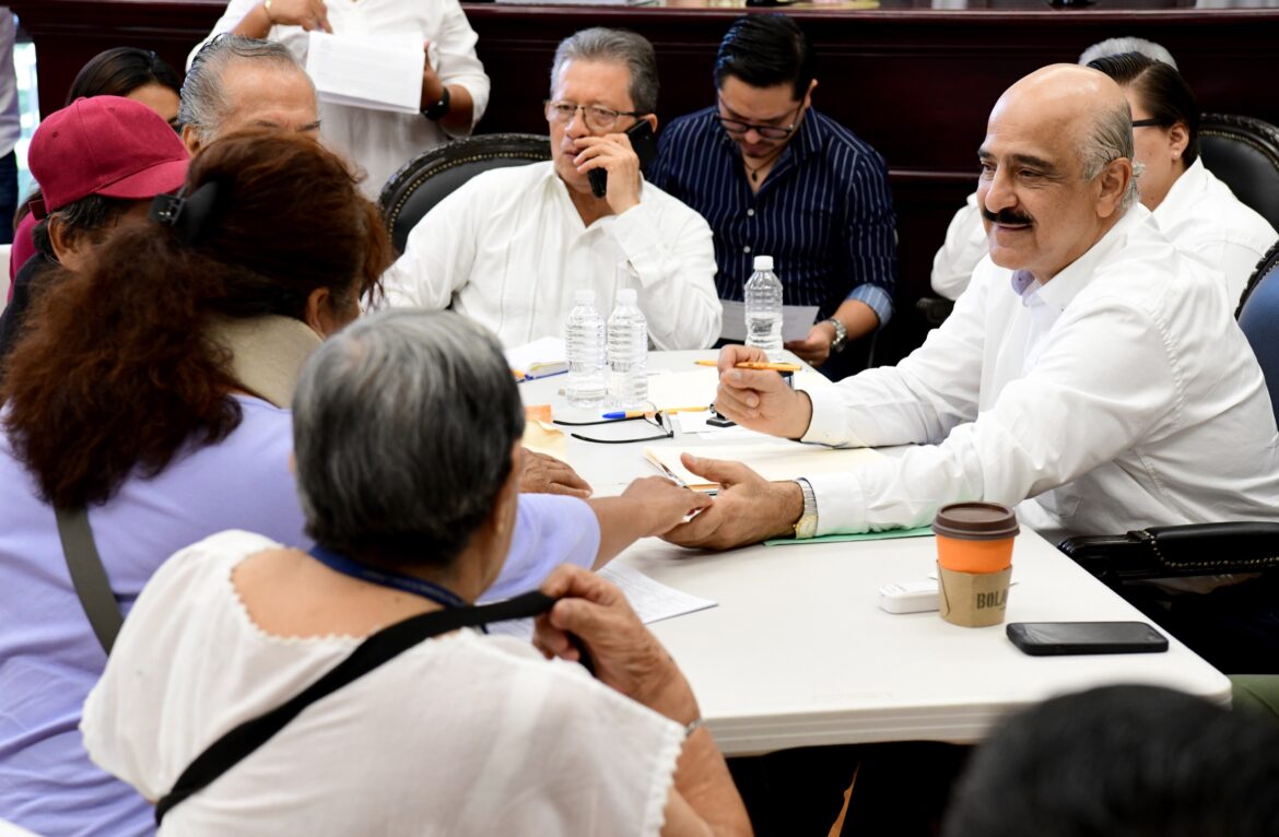 Ante la regidora Helen Sarmiento Jaén y los regidores Carlos Ortega Murguía, Carlos Rugerio Martínez y Daniel Fernández Carrión, el presidente municipal Ricardo Ahued atendió a cientos de ciudadanas y ciudadanos que acudieron este lunes a Palacio Municipal para gestionar la ampliación de las redes eléctrica, de drenaje sanitario y pluvial.
