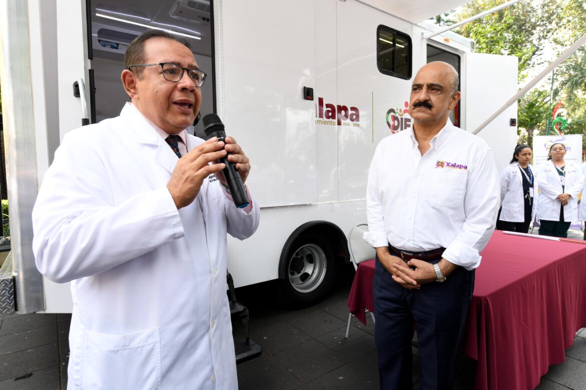 Xalapa, Ver.- Para fortalecer el programa asistencial del Sistema DIF Xalapa y ofrecer servicios médicos y odontológicos en colonias de la periferia, el presidente municipal Ricardo Ahued Bardahuil entregó y puso en funcionamiento este viernes la primera Unidad Médica Móvil del organismo.