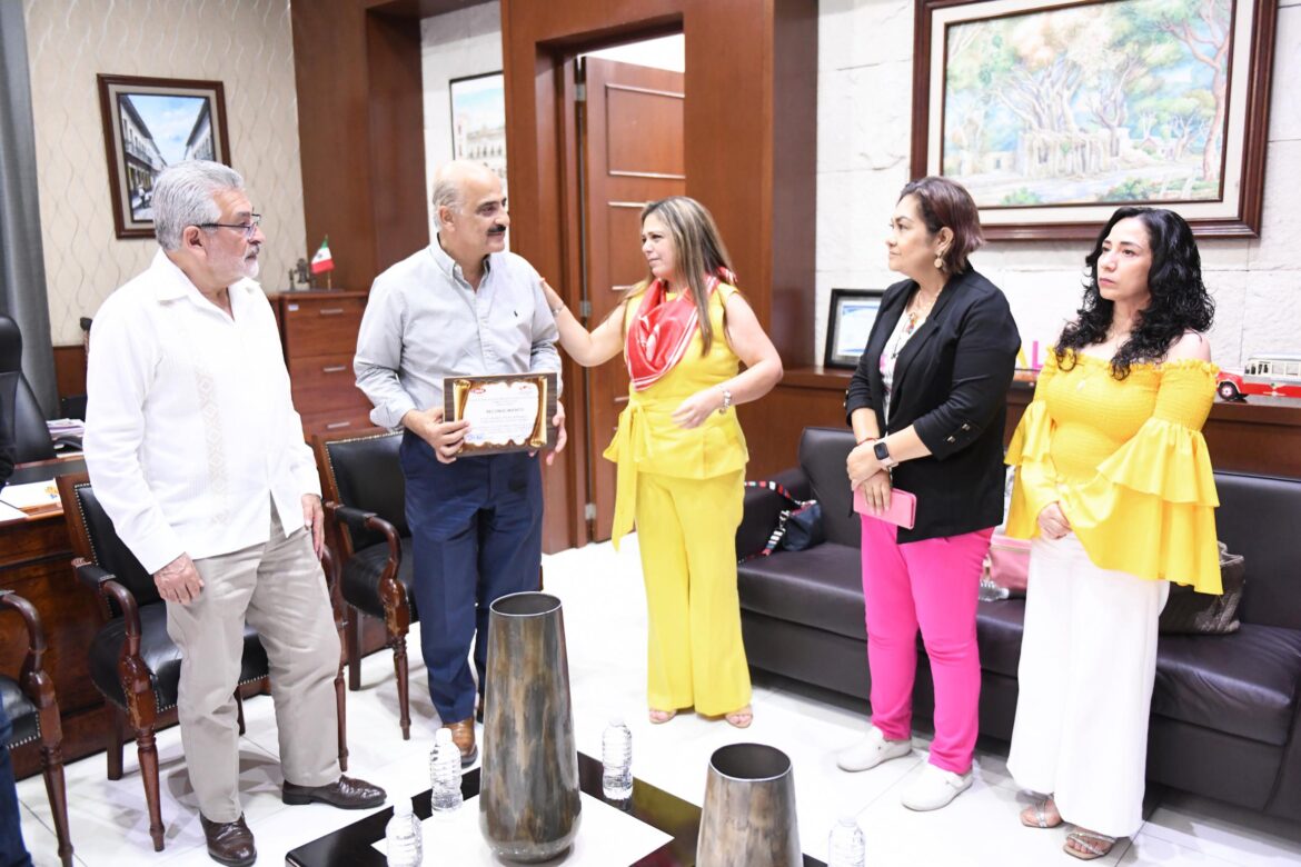 Xalapa, Ver.- El presidente municipal Ricardo Ahued Bardahuil sostuvo una reunión con integrantes del Comité de Damas de la CMIC Veracruz, quienes le entregaron un reconocimiento por su apoyo a la carrera “Xalapa por la vida 2024”, que se realizó en beneficio de la asociación civil Ayúdame Hermano Tengo Cáncer (Ahteca).