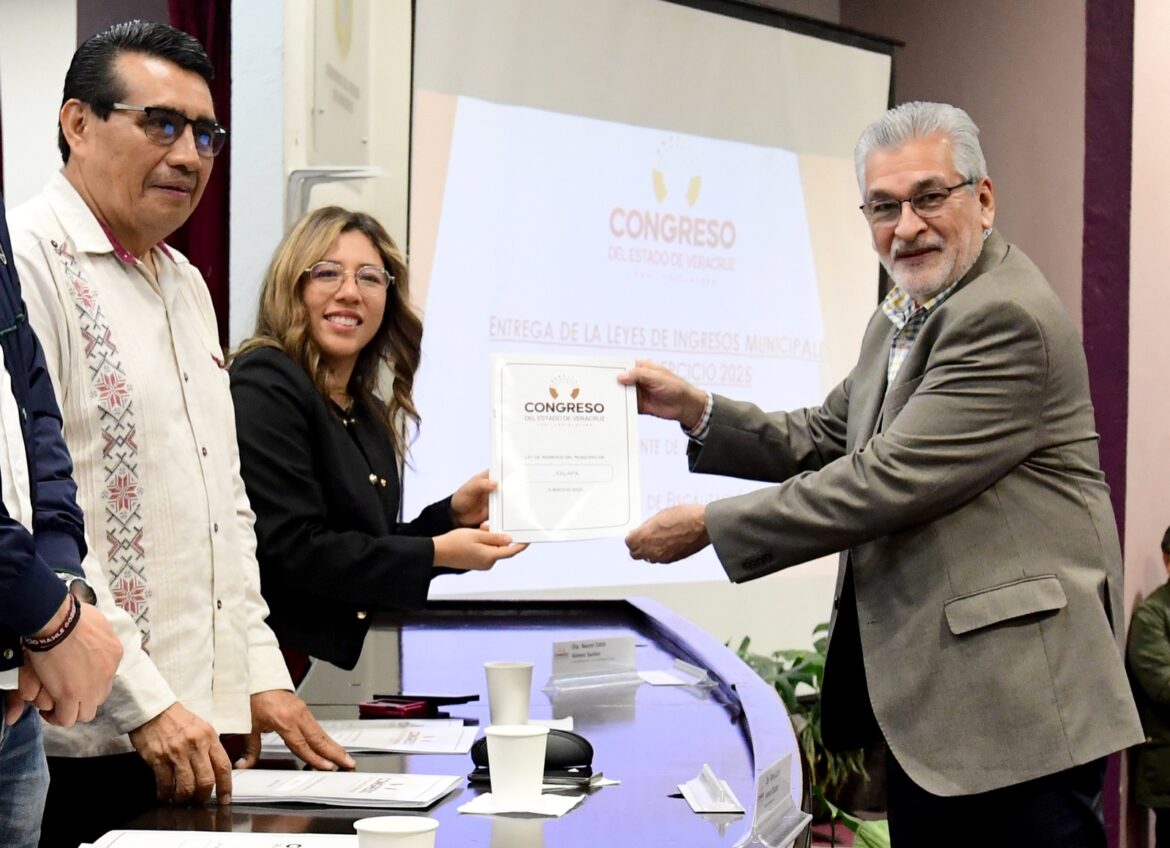 Xalapa, Ver.- El presidente municipal Alberto Islas Reyes asistió a la entrega de las Leyes de Ingresos Municipales para el ejercicio fiscal 2025, evento que encabezó el diputado presidente de la Junta de Coordinación Política del Congreso del Estado, Esteban Bautista Hernández.