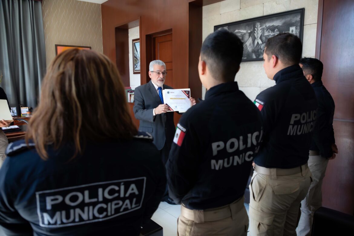 Xalapa, Ver.- En nombre del Ayuntamiento, el alcalde Alberto Islas Reyes entregó un reconocimiento a cuatro elementos de la Dirección de Seguridad Ciudadana y Tránsito Municipal, ya que gracias a su efectiva intervención se logró liberar a un menor que se encontraba privado de su libertad.