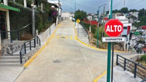 Las acciones que comprenden la pavimentación de más de 2 mil 100 metros cuadrados de superficie incluyen la instalación de alumbrado público y señalética vial; la construcción de escalinatas, muros, banquetas y la rehabilitación de las redes de agua potable y de drenaje sanitario.