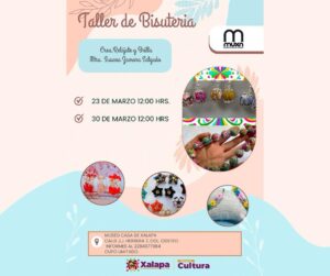 El domingo, en el Museo Casa de Xalapa (Muxa), continuará el taller de bisutería, impartido por Susana Zamora Salgado, a las 12:00 horas. A esa misma hora, en el Parque Juárez, comenzarán los “Domingos Familiares”. En el Museo de la Música Veracruzana se presentará el grupo Sonos. A las 12:00 horas estará el Ballet Royal Xalapa en el Teatro J. J. Herrera.