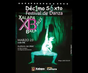 A las 16:00 horas, en el auditorio de la IMAC, se llevará a cabo el décimo sexto Festival de Danza “Xalapa Baila”. A las 17:00 horas, en el Museo de la Música Veracruzana, Ernesto Gómez Luna ofrecerá un recital de guitarra, mientras que en el Parque Juárez se celebrará “Danzón pa’l Corazón”.