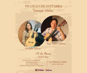 El sábado a las 17:00 horas, se presentarán Viviana Garza y Ana Lilia Cabezas como parte del VII Ciclo de Guitarra “Enrique Velasco”, en el Museo de la Música Veracruzana.
