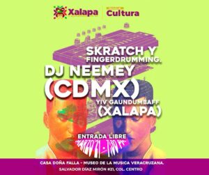 A las 19:30 horas, en el Teatro J. J. Herrera, se presentará el Ensamble Escénico 2025 del Instituto Superior de Artes Escénicas Nandehui de Xalapa. A esa misma hora, en el Museo de la Música Veracruzana, el DJ Neemey, de la Ciudad de México, presentará el proyecto Skratch y Fingerdrumming.