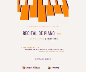 A las 18:00 horas, en el Museo de la Música Veracruzana “Casa Doña Falla”, la Academia de Música Jazz Cat ofrecerá un recital de piano.