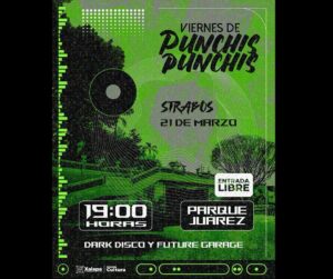 Una hora más tarde, en el parque Benito Juárez, en el “Viernes de Punchis, punchis” estará el DJ Strabos, con ritmos de dark disco y future garage.