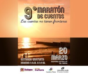El jueves 20 de marzo, a las 9:00 horas, inicia el noveno Maratón de Cuentos “Los cuentos no tienen fronteras”, a cargo de Iván Zepeda Valdés, en el CRX. A las 11:00 horas, en el mismo recinto, se podrá visitar la expo de arte “21 Pinceladas”, organizada por el Instituto Down Xalapa A.C.