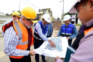 Acompañado por el director de Obras Públicas, Guillermo Ávila Devezze y funcionariado de la Dirección de Participación Ciudadana, el Edil supervisó la construcción del colector pluvial que se ejecuta en las calles Popocatépetl y Jazmín, con el que se beneficiará a más de mil 200 personas del sector Higueras y las colonias El Cafetal, Rotaria y Jacarandas.