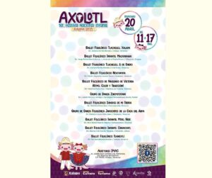 El domingo, a las 11:00 horas, en el auditorio de la IMAC, continúa el Festival Axolotl. A lo largo del día, en el Parque Juárez, se tendrá del programa “Domingos Familiares”.