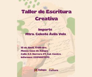 Este martes 15 de abril, en el Muxa, iniciará el Taller de Escritura Creativa de Celeste Ávila Vela, a las 17:00 horas. A las 18:00 horas, en el Teatro J. J. Herrera, se proyectará “La Pasión de Cristo”, como parte del ciclo “Movie-martes”, en colaboración con el Departamento de Cinematografía de la UV.