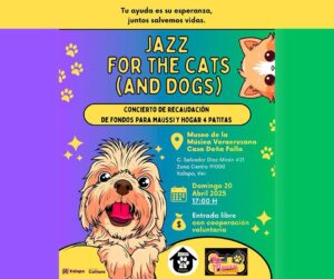 A las 17:00 horas, en el Museo de la Música Veracruzana, se ofrecerá el concierto “Jazz for the cats and dogs”, evento a beneficio de nuestros amigos peluditos. A la misma hora, en el Parque Juárez, disfruta del tradicional “Danzón pa’l Corazón”.
