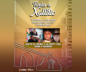 A las 17:00 horas, en las “Tardes de Xallitic”, se presentará el Dueto El Primo y la Forty Five, así como Gema y Ricardo. A las 19:00 horas, en el Centro Recreativo Xalapeño (CRX), se proyectará la película “Adiós muchachos”, como parte del ciclo de cine francés “Retratos de la niñez”.