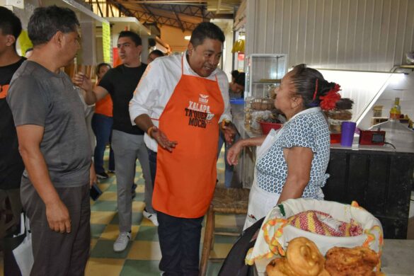 Como parte de su jornada, el aspirante visitó el mercado Adolfo Ruiz Cortines, conocido como “La Rotonda”, donde dialogó con locatarios y comerciantes, y se comprometió a mejorar las condiciones del espacio, reconociendo la importancia de este centro para la economía local.