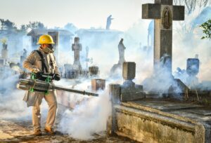 Xalapa, Ver.- Con el fin de prevenir enfermedades transmitidas por vector como el Dengue, personal del Ayuntamiento, en coordinación con los Servicios de Salud de Veracruz y la Jurisdicción Sanitaria V, realizan acciones de nebulización, aplicación de larvicidas y limpieza general en los panteones municipales.