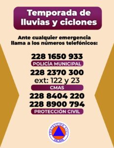 En este sentido, recomendó a la población adoptar las precauciones necesarias por la persistencia del Temporal Lluvioso, el cual puede provocar actividad eléctrica, viento arrachado, crecida súbita de ríos y arroyos de respuesta rápida, anegamientos y escurrimientos importantes en vialidades.