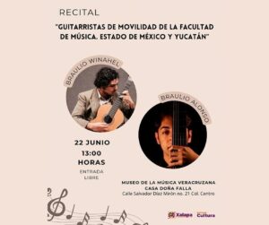 A esta misma hora, en el Teatro del Estado “General Ignacio de la Llave”, se clausurará el Festival “Alberto de la Rosa”, con la participación de la Tuna Femenil de la Universidad Veracruzana y el maestro Ismael Ledesma. A las 13:00 horas en el Museo de la Música Veracruzana se tendrá el recital “Guitarristas de movilidad”, de la Facultad de Música del Estado de México y de Yucatán.