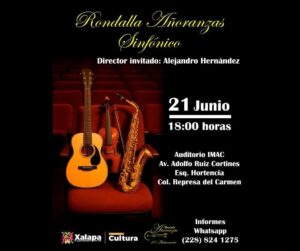 A las 17:00 horas en el Parque Juárez se desarrollará el programa “Danzón pa´l el Corazón”, con la Orquesta Municipal de Xalapa; a esta misma hora, en el Museo de la Música Veracruzana, se tendrá la presentación de Ricardo Salinas “Piano a seis cuerdas”. Para finalizar, en el auditorio de la IMAC, a las 21:00 horas, se ofrecerá un tributo a The Beatles.