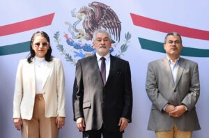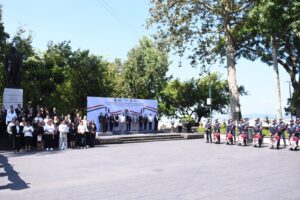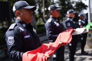 Acompañado por autoridades municipales y estatales, el Alcalde participó en este acto, con el fin de fortalecer los valores cívicos y el respeto a los símbolos patrios.