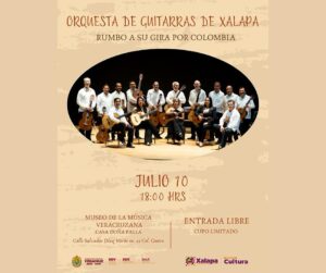 A las 18:00 horas, se desarrollará la presentación de proyectos artísticos de El Telón, Educación a través del Arte, en el Teatro J. J. Herrera, y la Orquesta de Guitarras de Xalapa ofrecerá un concierto en el Museo de la Música Veracruzana.