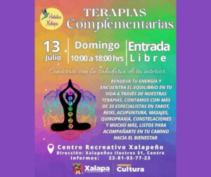 Las actividades culminan el domingo 13, desde las 10:00 horas, con Terapias Complementarias, ofrecidas por Hollística Xalapa, en el CRX. A las 12:00 horas, en el Teatro J. J. Herrera, se celebrará el Concierto de Verano de la Academia de Música JazzCat; mientras que en el Parque Juárez, se desarrollarán los “Domingos Familiares”.