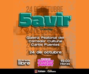 A esta misma hora, en la Galería Peatonal del Corredor Cultural “Carlos Fuentes”, se desarrollará “Viernes de Punchis, punchis”, con música de 5avir.