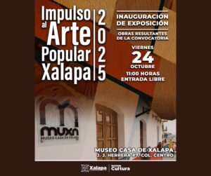 El 24 de octubre, a las 11:00 horas, en el Muxa, se inaugurará la exposición de las obras resultantes de la Convocatoria Impulso al Arte Popular Xalapa 2025. En Palacio Municipal, a las 17:00 horas, se tendrá el Encuentro de Rondallas para conmemorar el “Día Nacional de las Rondallas”.
