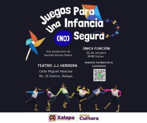 En el Centro Recreativo Xalapeño (CRX), se presentará la novela de ficción histórica “La voz del silencio”, a las 18:00 horas, y una hora más tarde, en el Teatro J. J. Herrera, “Juegos para una infancia segura”, producción de Garrobo Danza-Teatro.