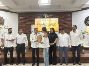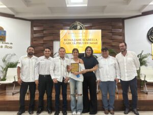 También se aprecia a Julio César Chávez posando junto a la galardonada y brindándole su apoyo por su gran desempeño y la proyección que ha logrado dentro del fútbol. El reconocimiento forma parte de las acciones municipales para impulsar el talento local y celebrar a quienes, desde distintas disciplinas, ponen en alto el nombre de Playa del Carmen.