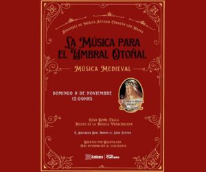 El domingo, a las 12:00 horas, en el Museo de la Música Veracruzana, se tendrá “Música para el umbral otoñal”, música medieval del Ensamble de Música Antigua Corazón con Manos; a esta misma hora, en el Parque Juárez, se realizará el tradicional programa “Domingos Familiares”.