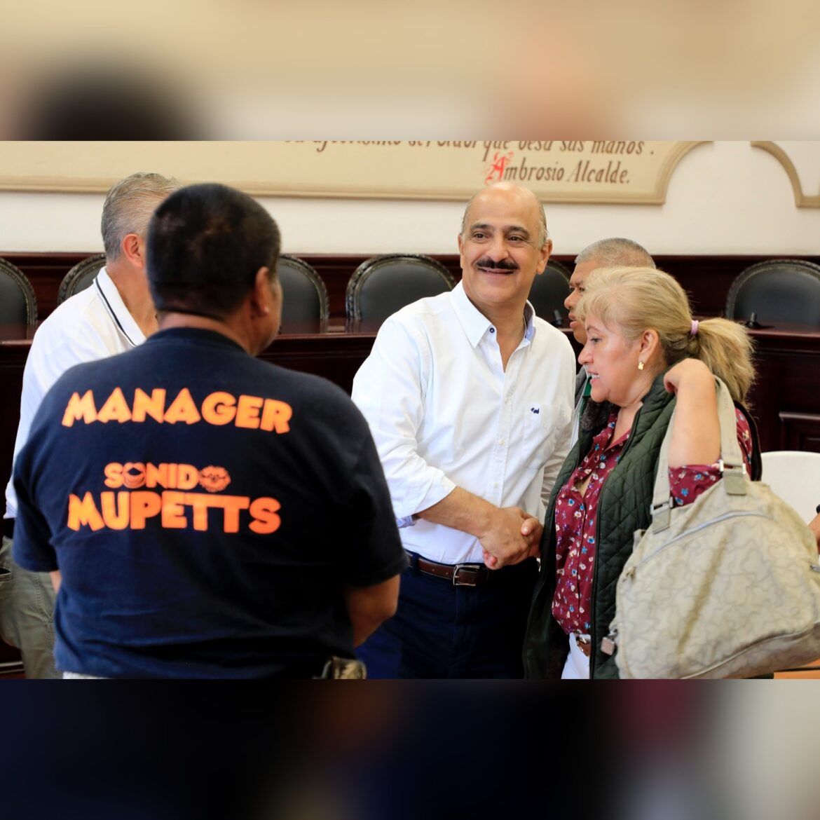 Xalapa, Ver.- El presidente municipal Ricardo Ahued Bardahuil recibió esta mañana a representantes de la mesa directiva del Sindicato Único de Sonideros del Estado de Veracruz (SUSEV), quienes reconocieron y agradecieron la realización de la Primera “Expo Sonidera, Arte, Cultura y más”.