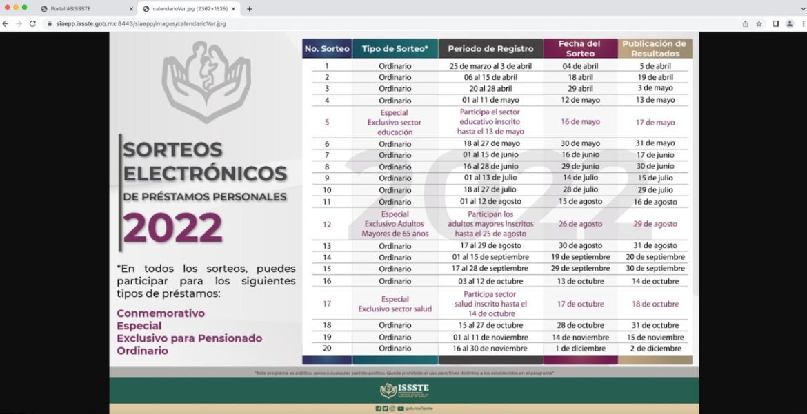 Ciudad de México, 1 de junio de 2022.- En el sexto sorteo de préstamos personales 2022, el Instituto de Seguridad y Servicios Sociales de los Trabajadores del Estado (Issste) asignó 35 mil créditos.