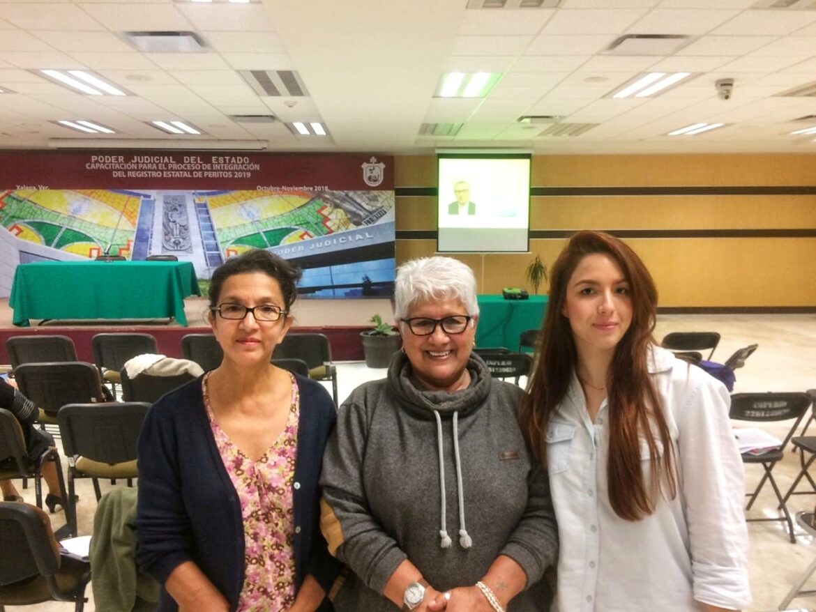 Frine Lima, Ana Lenz y Virginia Durán Campollo integrantes de la Asociación Nanciyaga, el Sendero, durante el diplomado en Derechos Humanos, en el edificio del Poder Judicial del Estado.