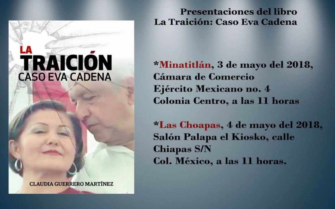 Aviso urgente: La sede de la presentación del libro La Traición: Caso Eva Cadena convocada en la Universidad del Sureste Vasconcelos, de último momento nos canceló, por presiones del mismo …